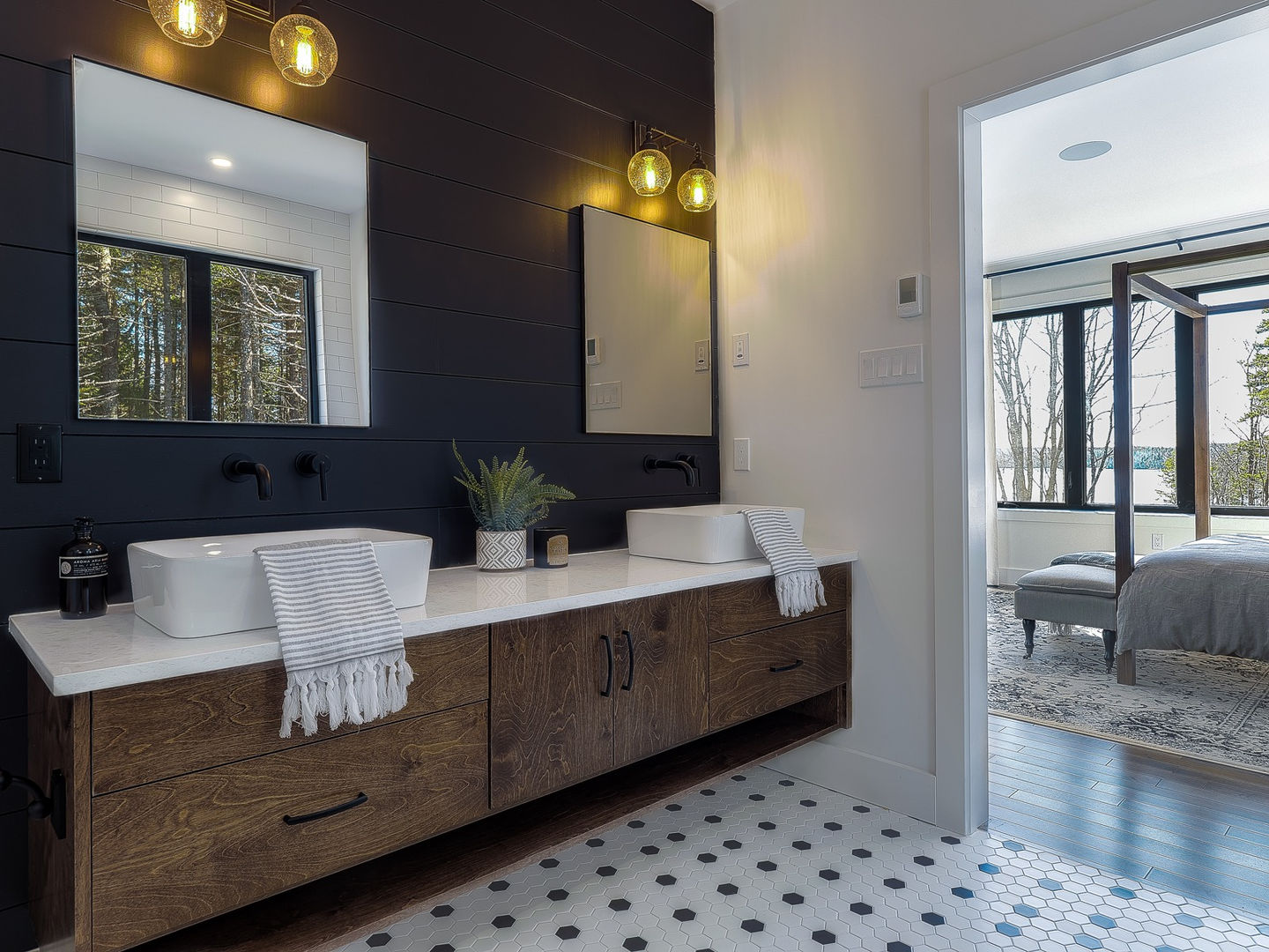 An exquisite lakefront 1.5-storey residence by Stonewater Homes featuring modern country style, expansive open-concept living, and refined finishes across three levels.
